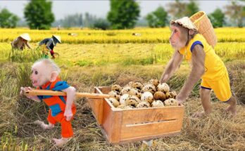 Unbelievable Moment 😲 Baby monkey insists follows help Cutis harvest Read More