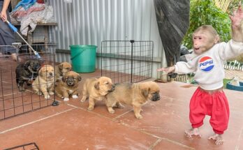 While Mom rolled up her sleeves to clean the puppies’ living space, LaLa proudly took on an important role — supervisor of the tiny, playful crew. She stood near the …