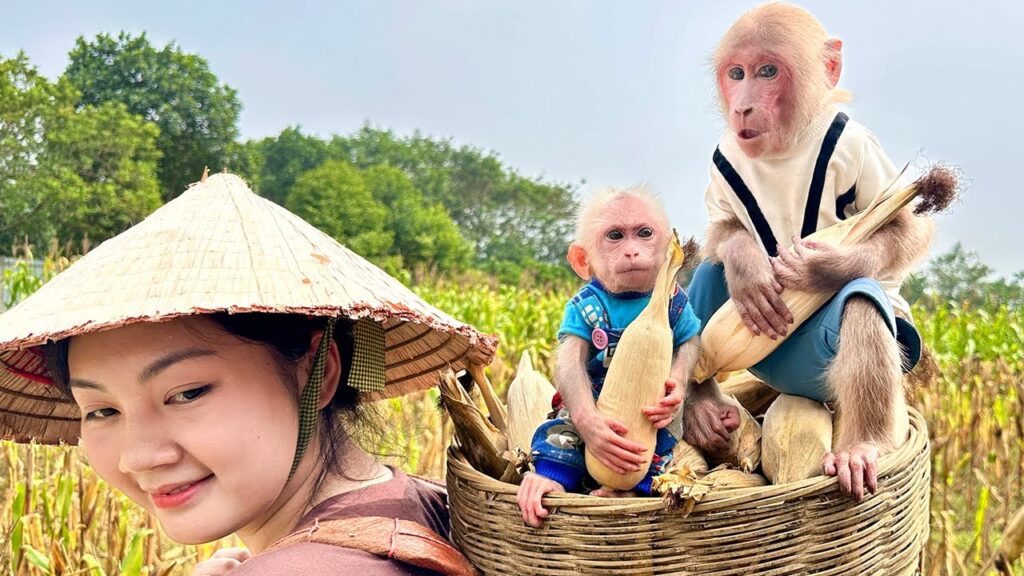 Seeing this, Mom felt her heart soften. She knelt down, wiped their tears, and patiently explained that harvesting corn meant walking under the hot sun and carrying heavy loads. But Bibi and Lala refused to give up. They cried harder and followed Mom step by step, not letting go.
