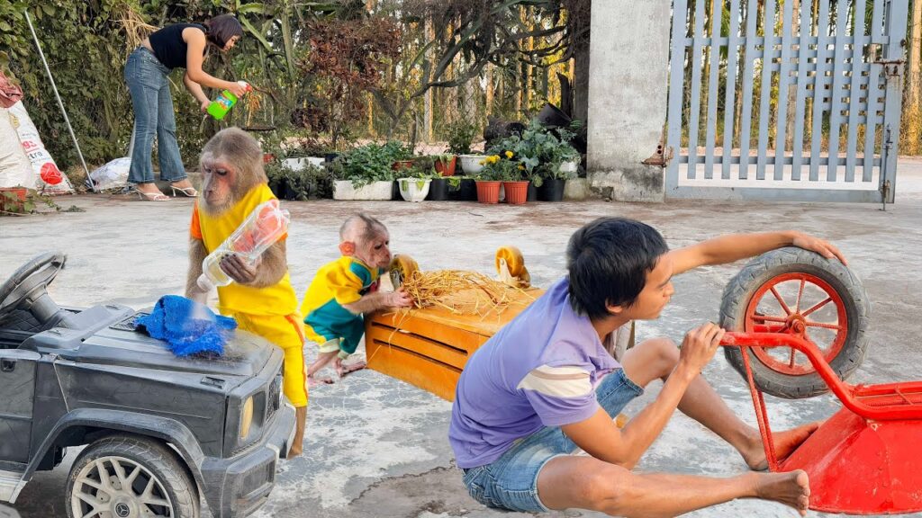 It was a bright and cheerful morning in the family’s little home, and CUTIS and BUEM were already wide awake before Mom and Dad. Instead of playing around as usual, the two little monkeys quietly watched their parents preparing for a busy day. Mom was cleaning the yard while Dad was fixing a broken fence near the garden. Seeing how much work their parents had to do, CUTIS and BUEM looked at each other with the same idea in mind — today, they would help!