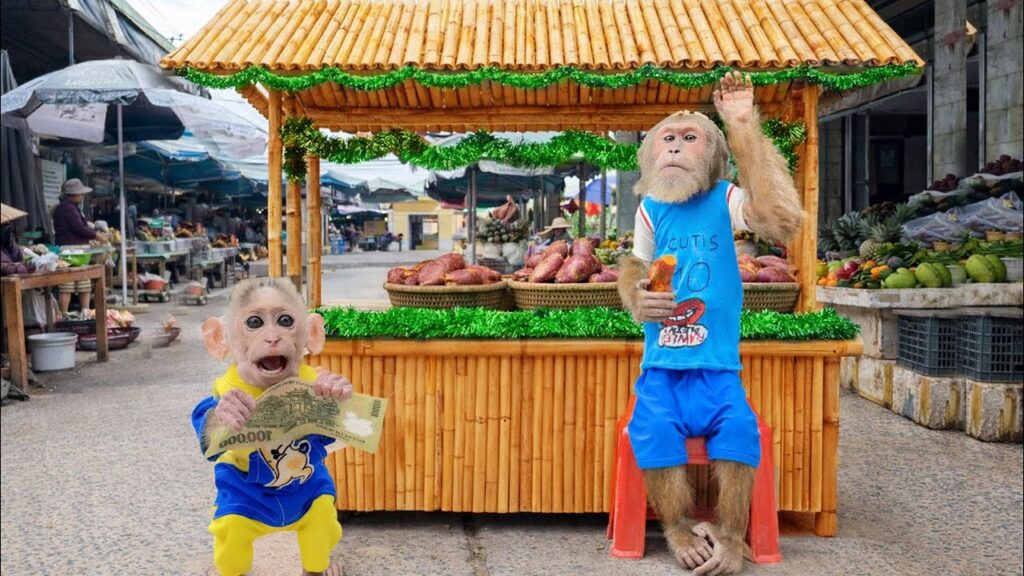 At first, only a few neighbors stopped by, curious about the tiny shop. CUTIS politely explained each product, acting like a professional seller, while Buem added free samples and cheerful greetings. Suddenly, something unexpected happened—customers began telling others! Soon, more villagers arrived, amazed by the monkeys’ honesty, fair prices, and adorable teamwork.