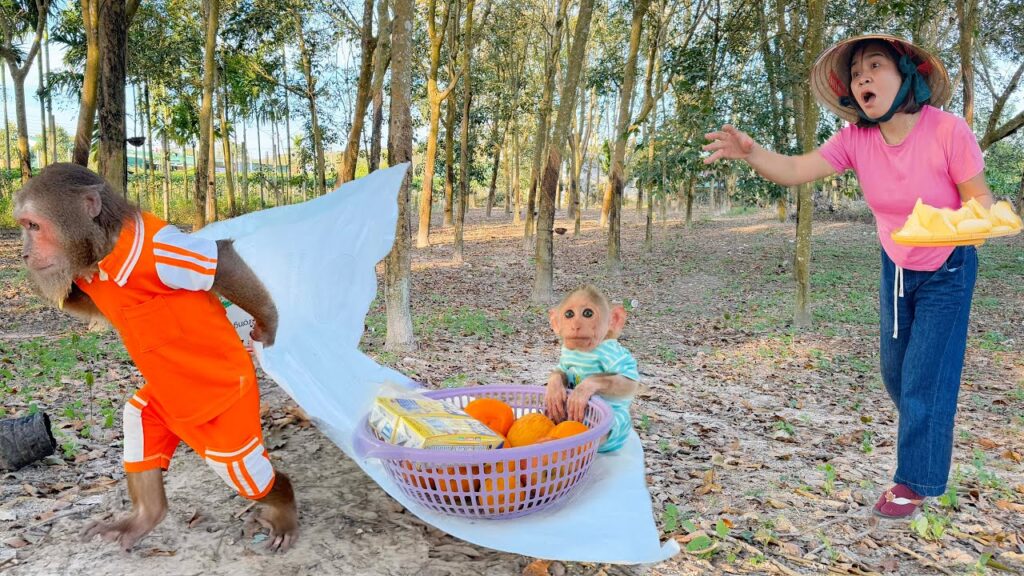 One bright and peaceful morning, when Mom was busy preparing food in the kitchen, CUTIS and BUEM quietly exchanged mischievous glances. An exciting idea suddenly popped into their clever little minds — a secret picnic! Without making a sound, the two carefully packed a small bag with bananas, bread, and a bottle of juice. Thinking they were being extremely sneaky, CUTIS tiptoed toward the door while BUEM eagerly followed behind, trying hard not to giggle.