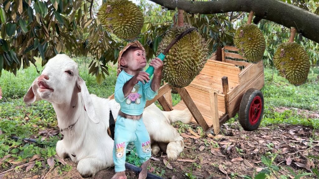 When they arrived, CUTIS carefully explained the “job” to the goats like a real boss. Of course, the goats didn’t understand, but they listened quietly while chewing grass. CUTIS climbed the durian trees slowly and cautiously, knowing how dangerous the sharp fruits could be. Each time a durian dropped safely to the ground, the goats rushed over excitedly, circling it like proud workers guarding their treasure.