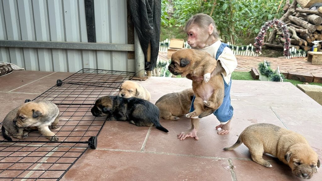 It started as a playful afternoon in the yard. Lala was full of energy, running around with excitement while the tiny puppies followed her everywhere. They loved chasing her tail and tumbling over each other in the grass. Lala didn’t mean any harm—she was simply having fun and enjoying the lively moment.
