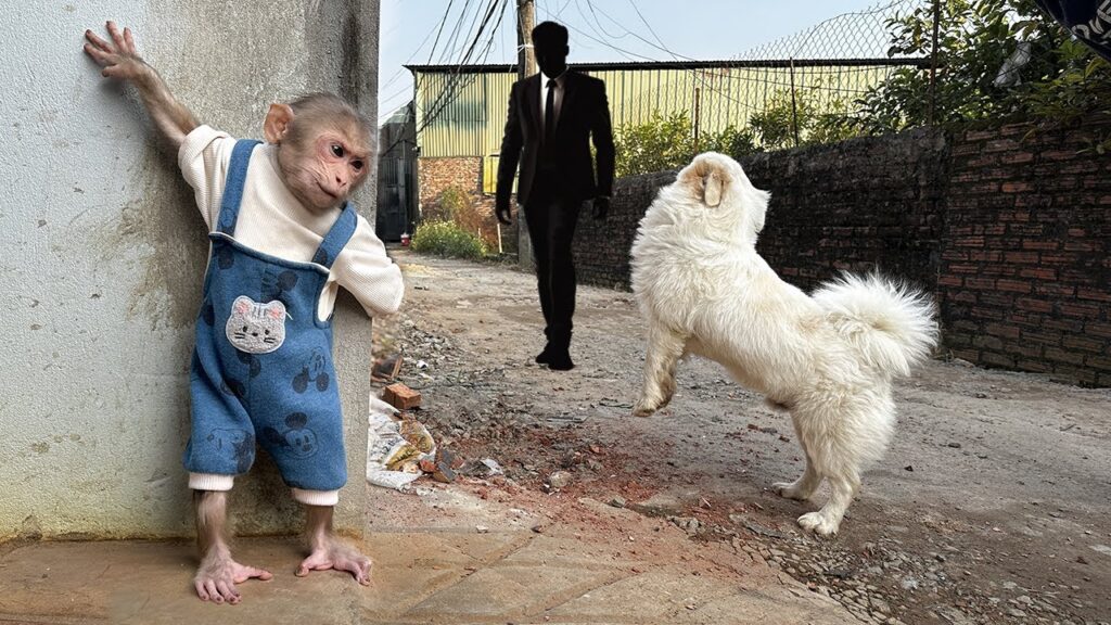 The ducklings continued playing, unaware of the danger. Lala stood, lowered her head, and issued a deep warning bark. The strangers paused, surprised by the sudden sound. She barked again, louder this time, placing herself between the gate and her little flock. Her tail stiffened, and her paws dug into the grass as she advanced a step forward.