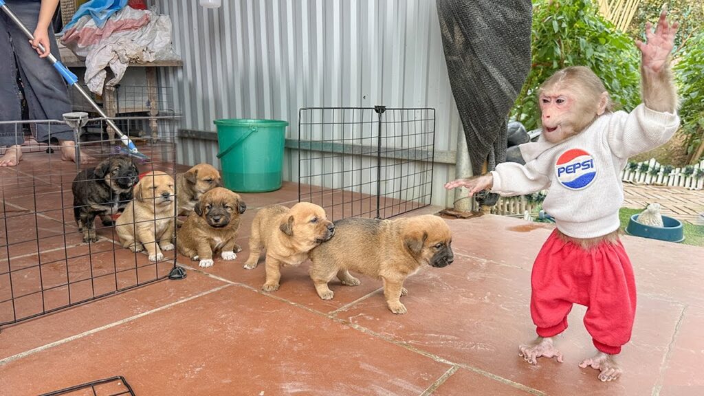 This simple moment showed how caring and attentive LaLa could be. While Mom worked hard to create a clean, safe place, LaLa made sure the puppies stayed safe and calm. Together, they turned a routine chore into a heartwarming scene of teamwork, responsibility, and love for the little furry family members.