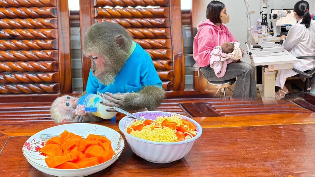 Parents take newborn baby to hospital, who takes care of Cutis & baby monkey🤔