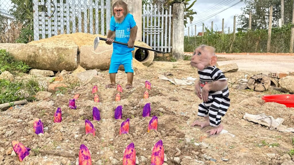CUTIS carefully dug a small hole, but instead of using proper tools, CUTIS used a coconut shell and bare hands, making the process extra funny to watch. Soil ended up everywhere — on CUTIS’s face, tail, and even head! Still, CUTIS worked seriously, gently placing the plant into the hole and patting the soil down with great pride.