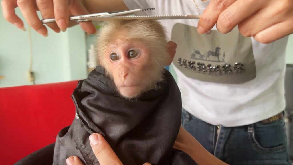 It was a quiet afternoon until Monkey Luk suddenly appeared with a very serious expressionâand a pair of scissors. Everyone immediately sensed that something funny (and a little dangerous) was about to happen. Luk had been staring at his reflection for a long time, touching his hair thoughtfully, as if planning a big transformation.