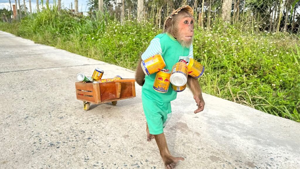 The baby monkey, curious and excited, joined the mission. Together they sneaked around, collecting little thingsāsocks, toys, scissors, cups, even Dadās favorite hatāuntil the basket was overflowing.